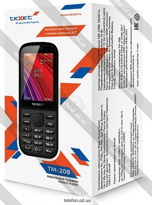 Купить телефон TeXet TM-208: недорого, рассрочка без переплат под 0%, г. Одесса