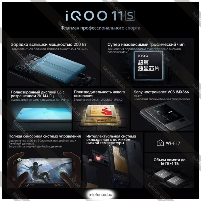 Телефон Vivo iQOO 11S 5G NFC 16/512GB, ОдессаБренд: Vivo Весенняя скидка 2026 г. — 10%, экономия: 1 810 грн.