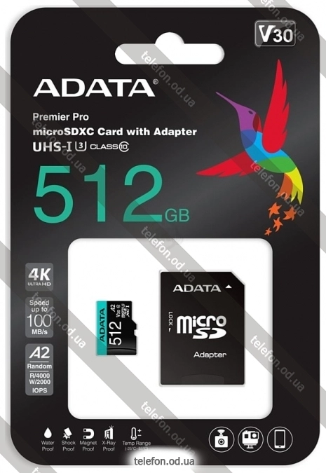 Карта памяти ADATA Premier Pro AUSDX512GUI3V30SA2-RA1 microSDXC 512GB (с адаптером) недорого — весенняя распродажа 2026 со скидкой 10%, г. Одесса, Украина.