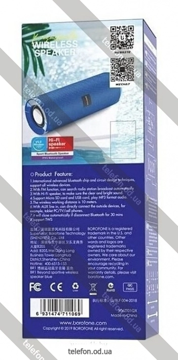 Портативная акустика Borofone BR1, Одесса, Украина.