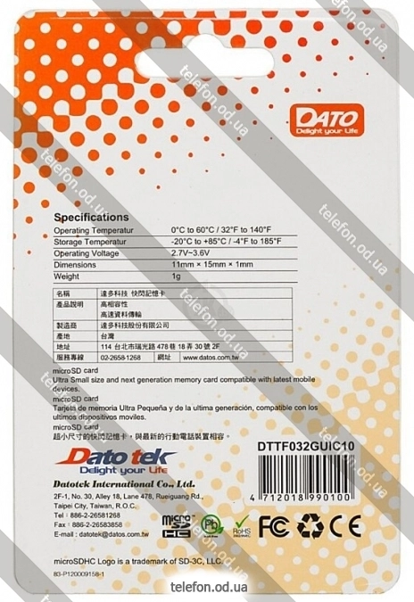 Карта памяти Dato microSDHC DTTF032GUIC10 32GB, Одесса, Украина.