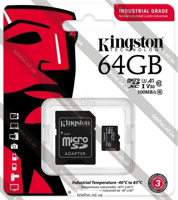 Карта памяти Kingston Industrial microSDHC SDCIT2/64GBSP 64GB, Одесса, Украина.