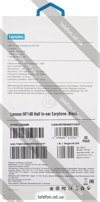 Наушники Lenovo HF140 недорого — осенняя распродажа 2025 со скидкой 15%, г. Одесса, Украина. | |