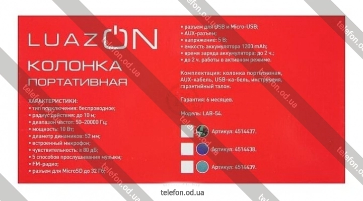 Портативная акустика Luazon LAB-54, Одесса, Украина.